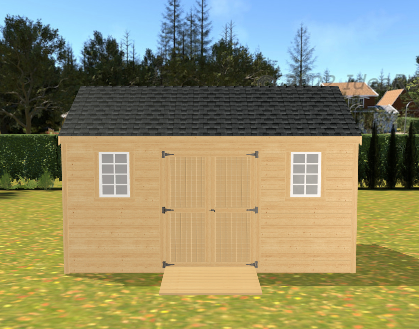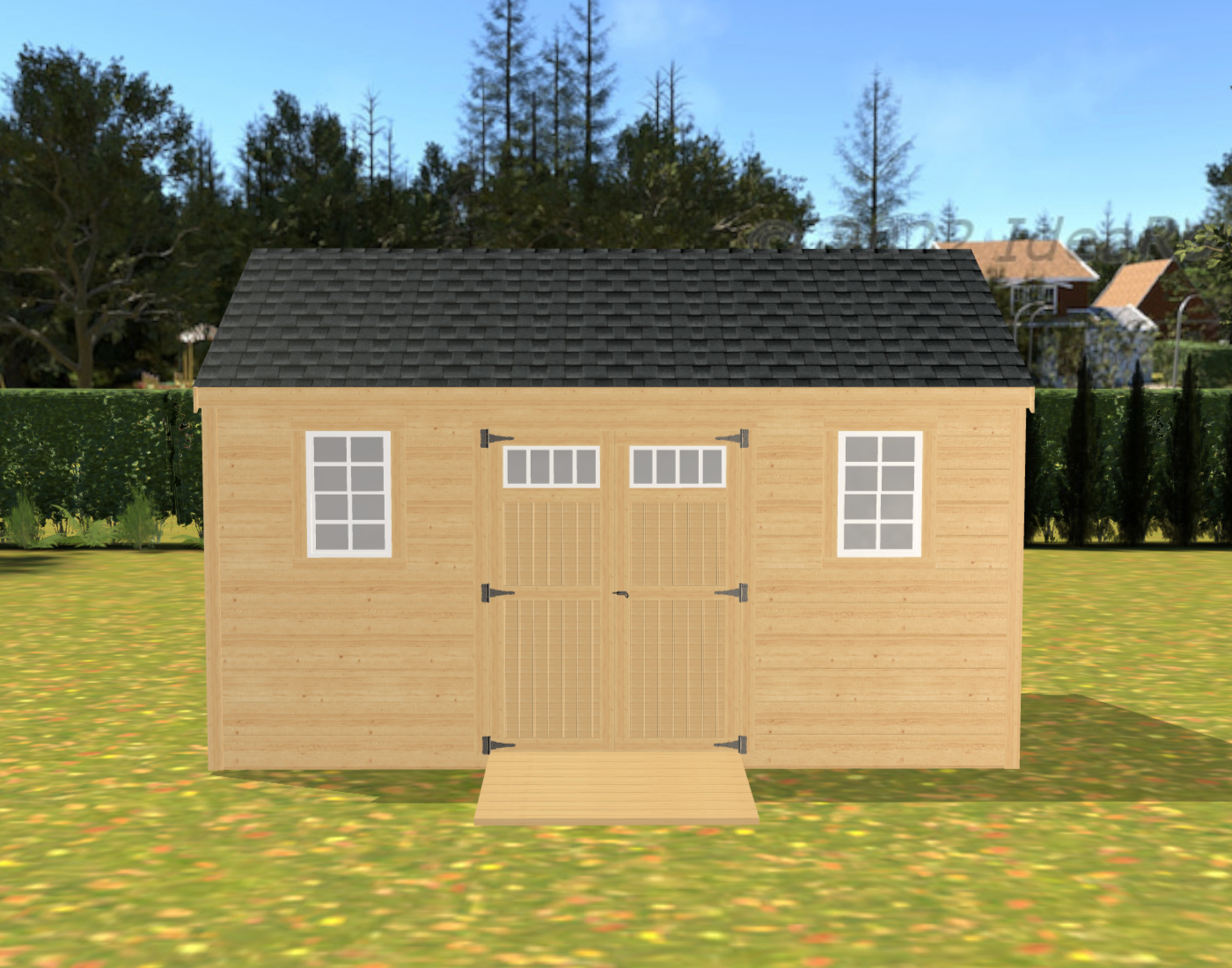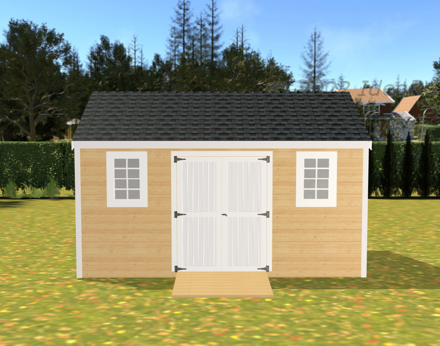 - Trim: 1" x 4" Pine Corner Boards, 1" x 6" Pine Fascia Boards, 1" x 6" Pine Rake Boards & 1" x 2" Shadow Rake Boards For The Gable Ends & 1/2" Exterior CDX Plywood Soffit